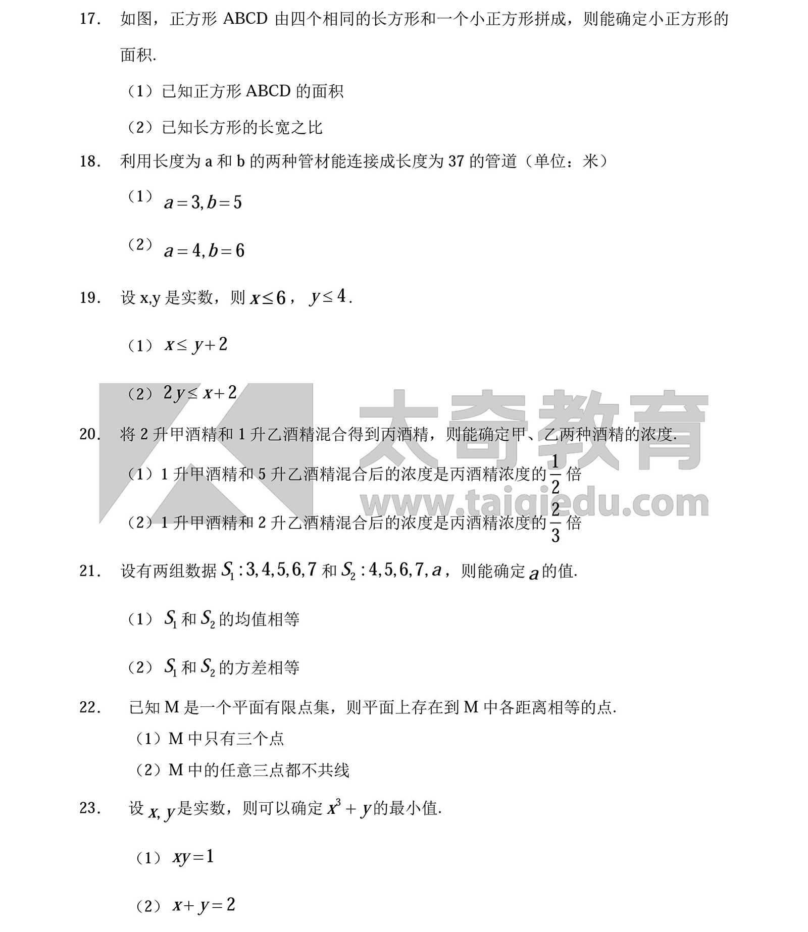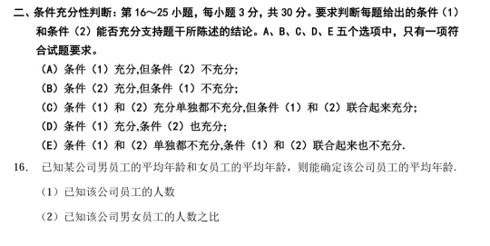 2016MBA管理類聯(lián)考數(shù)學(xué)真題:條件充分性判斷