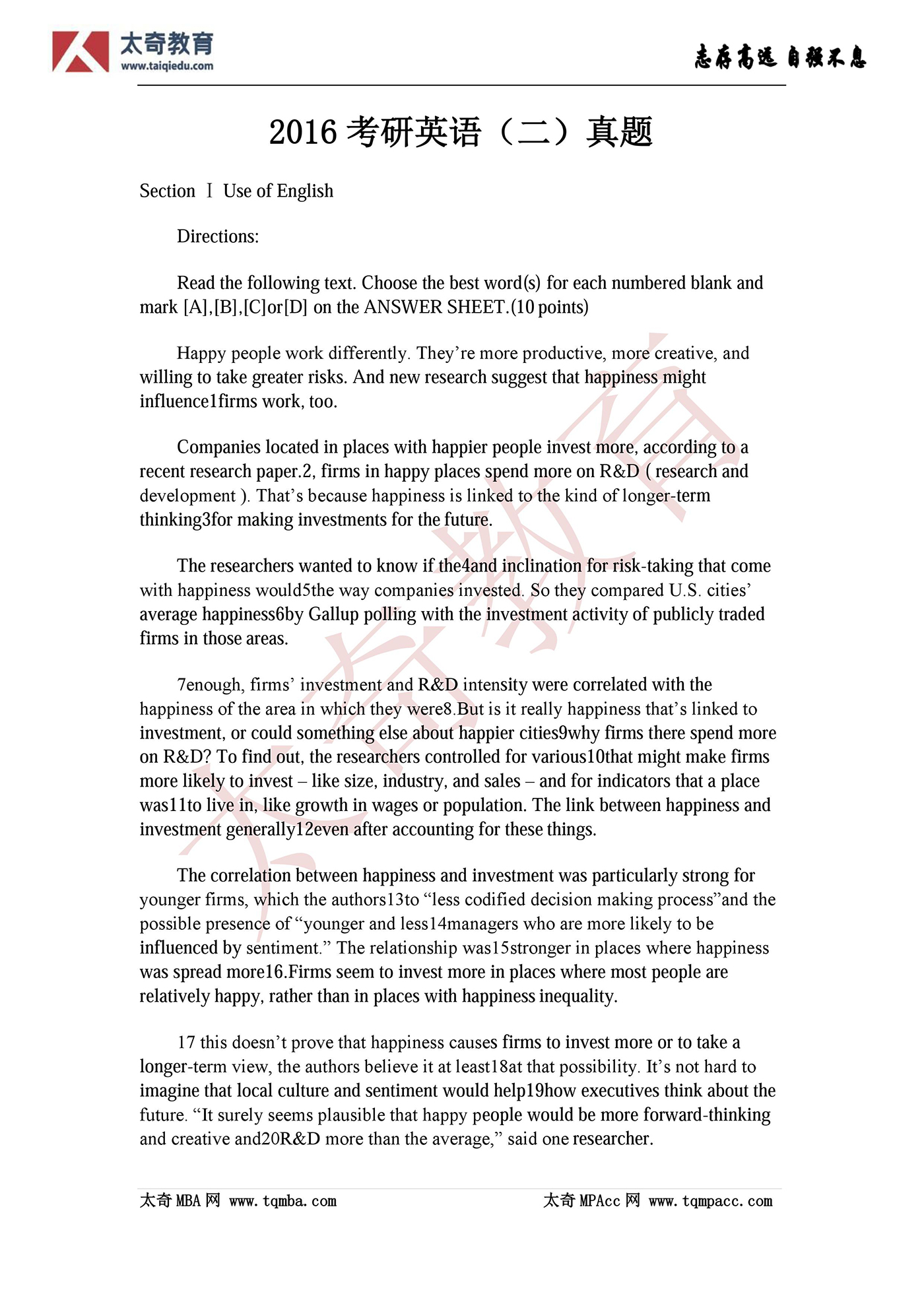 2016MBA管理類聯(lián)考英語(二)真題完整版