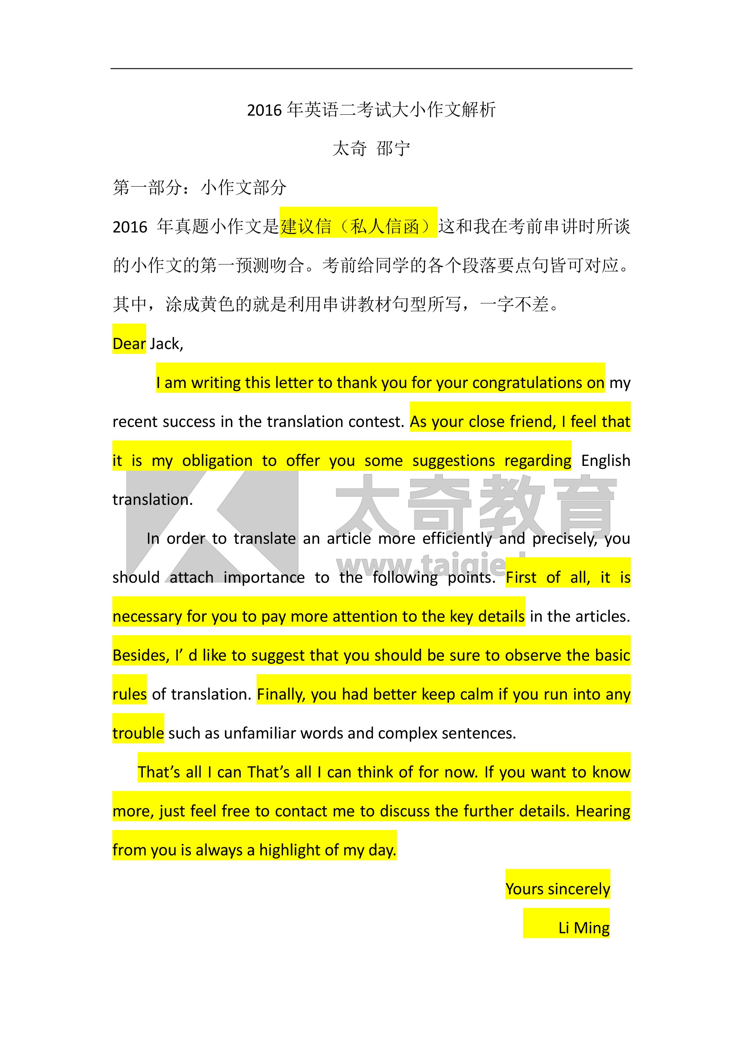 在2016年聯(lián)考中,英語(二)寫作部分太奇直接命中大、小作文,比命中考題更為重要的是:太奇在對每次??嫉闹R點、考點,尤其在對命題方向的把握上極其精準。