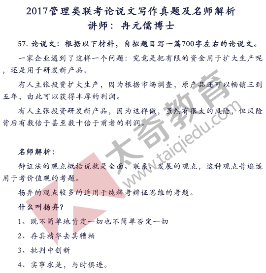 冉元儒博士解析2017年MBA聯(lián)考寫作真題(附參考范文