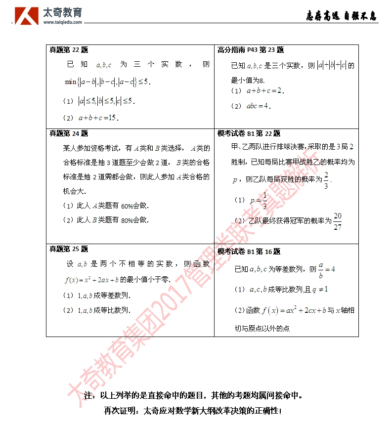 祝賀太奇教育2017管理類聯(lián)考數(shù)學(xué)直接命中66分(7)
