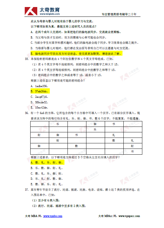 2019年管理類聯(lián)考綜合能力邏輯真題及參考答案(4)