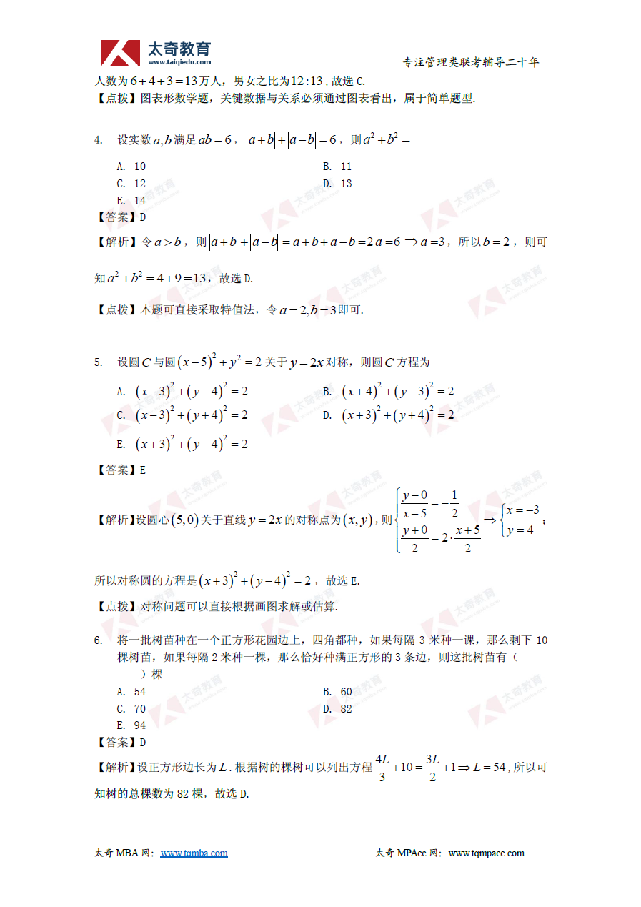 2019年管理類聯(lián)考數(shù)學(xué)真題+解析(太奇官方版)(2)
