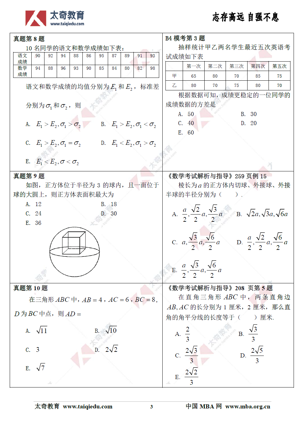 喜賀太奇2019年管理類聯(lián)考數(shù)學(xué)真題直接命中57分