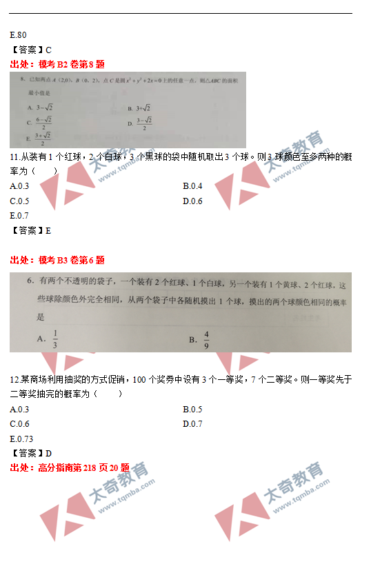 太奇2021年MBA管理類(lèi)聯(lián)考數(shù)學(xué)真題命中對(duì)照(5)