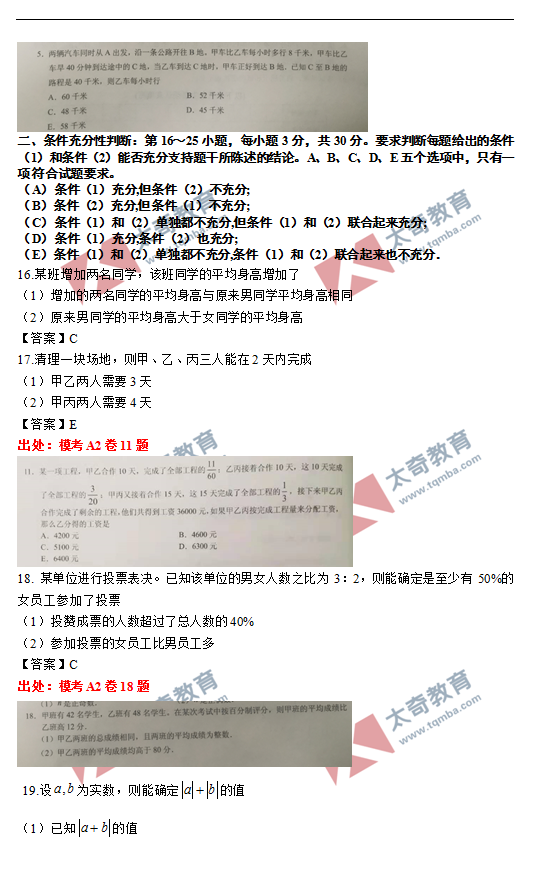 太奇2021年MBA管理類聯(lián)考數(shù)學真題命中對照(7)