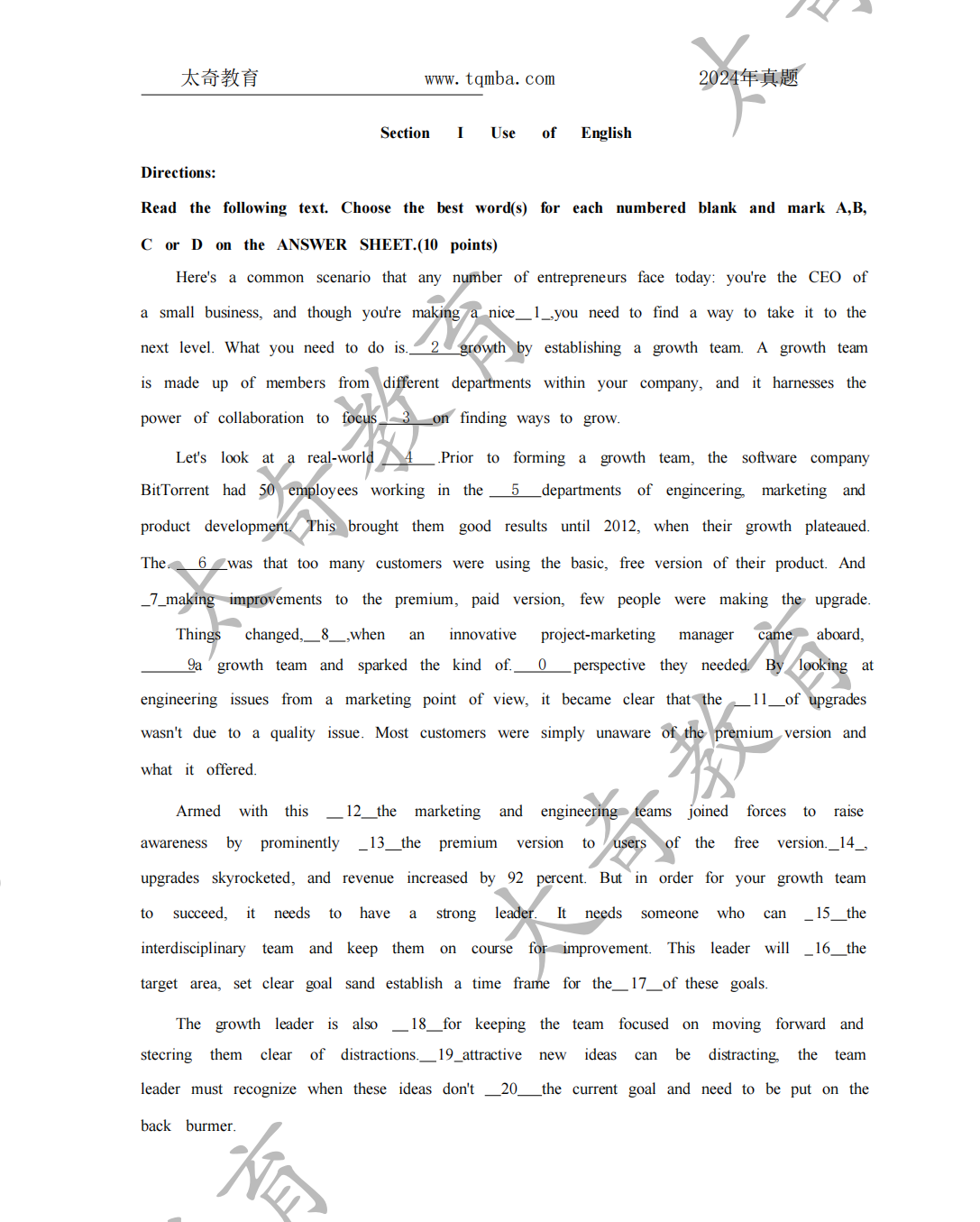 2023年管理類聯(lián)考英語二真題(1)