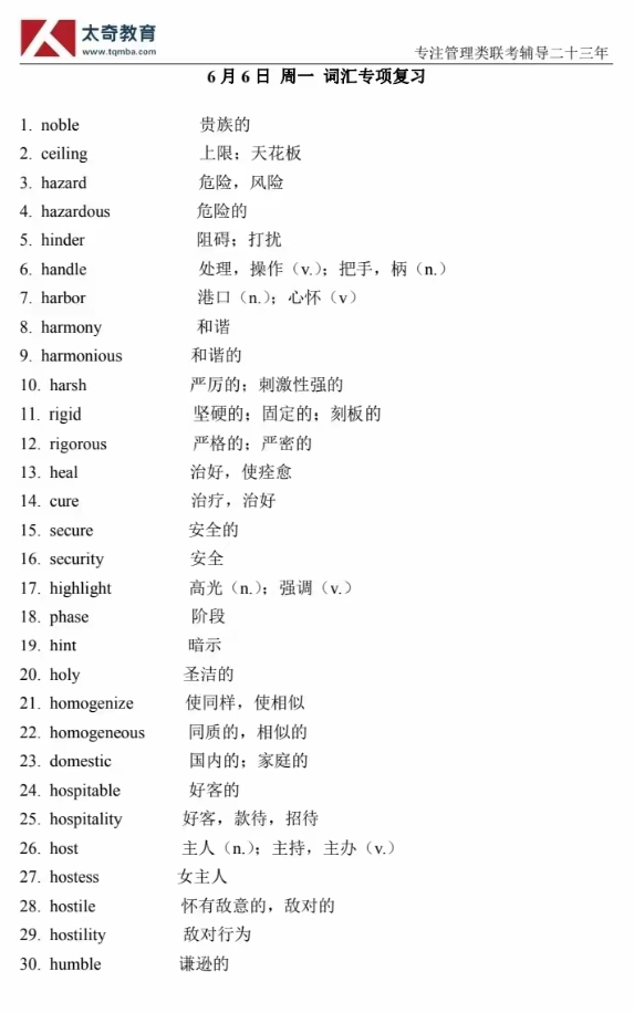 6月6日詞匯專項練習(xí)