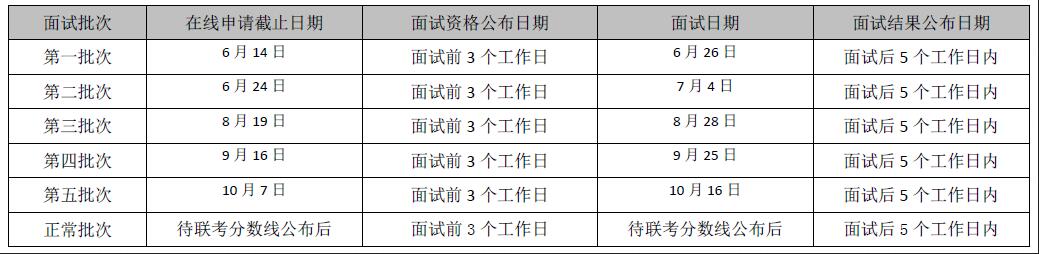 5. 在線申請日期對應(yīng)了指定面試批次及相關(guān)安排,書面材料的提交和審核將統(tǒng)一在面試環(huán)節(jié)進(jìn)行。