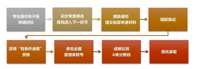 “有條件錄取資格”表示已通過提前面試,考生參加管理類碩士聯(lián)考通過國家A線即可按成績擇優(yōu)錄取;