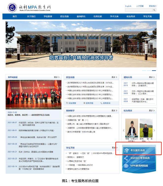 1.考生請(qǐng)登陸社科MPA教育中心網(wǎng)站(網(wǎng)址:www.cassmpa.cn)首頁(yè)右下角的考生服務(wù)系統(tǒng)(具體位置請(qǐng)見圖),按照要求注冊(cè)、填寫并提交《提前面試考生信息表》。
