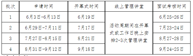 3.“MBA優(yōu)選計劃”活動分四批次進行。每批次資格審核通過的考生須通過MBA教育中心網(wǎng)站查看當次活動通知,并按通知要求參加各項活動。